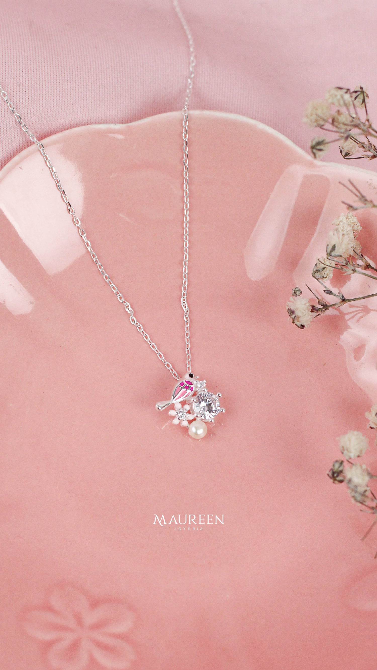 Collar flor VAN nacar anarajando con circon - Plata