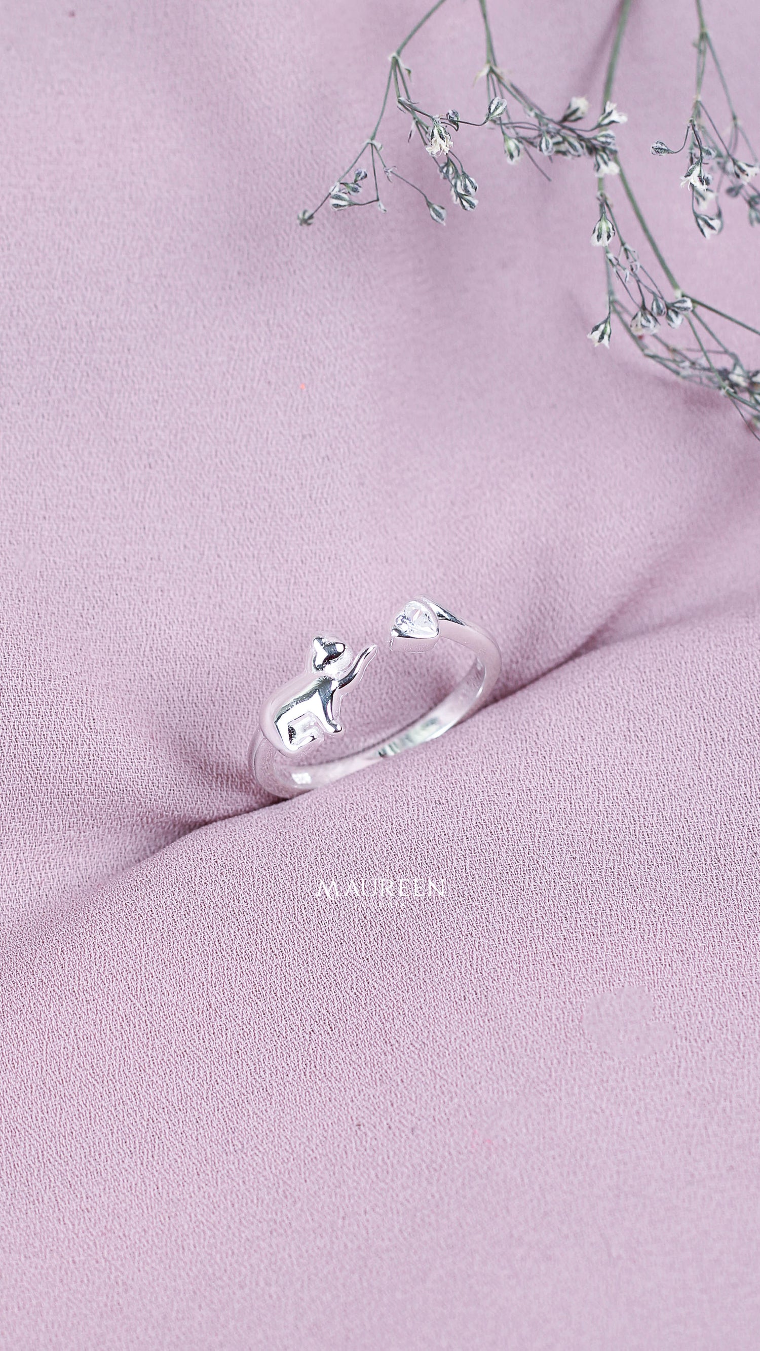 Anillo gato patita arriba y corazon punto luz ajustable - Plata