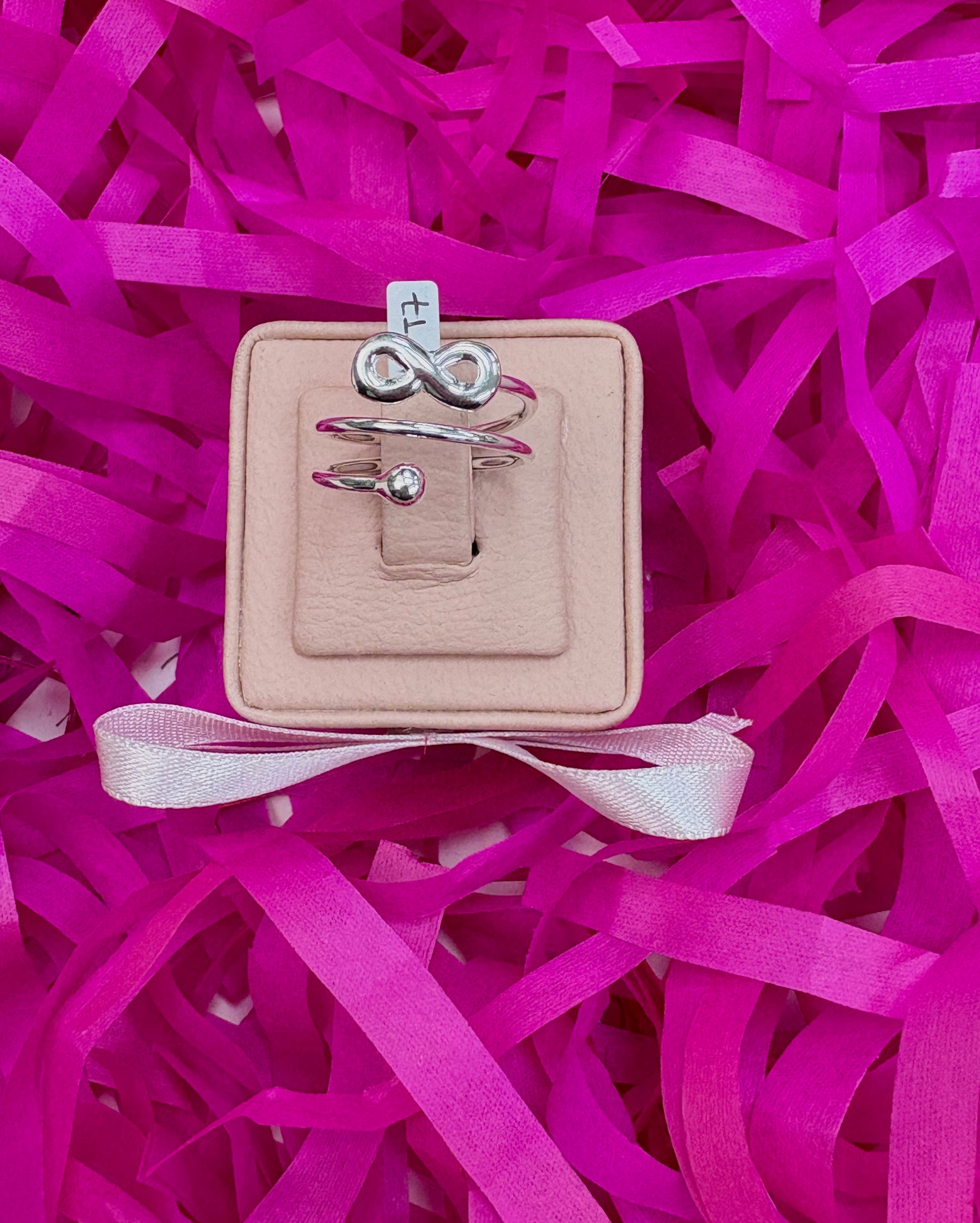 Anillo ajustable infinito con esfera - plata
