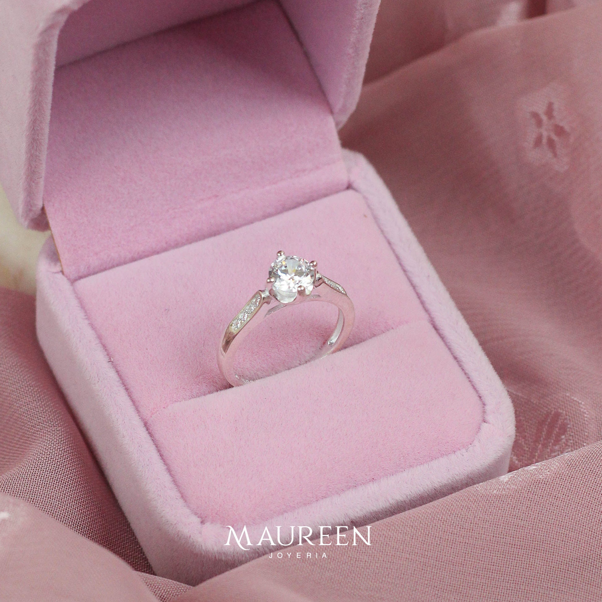 Anillo de compromiso calado abajo en el circon - Plata