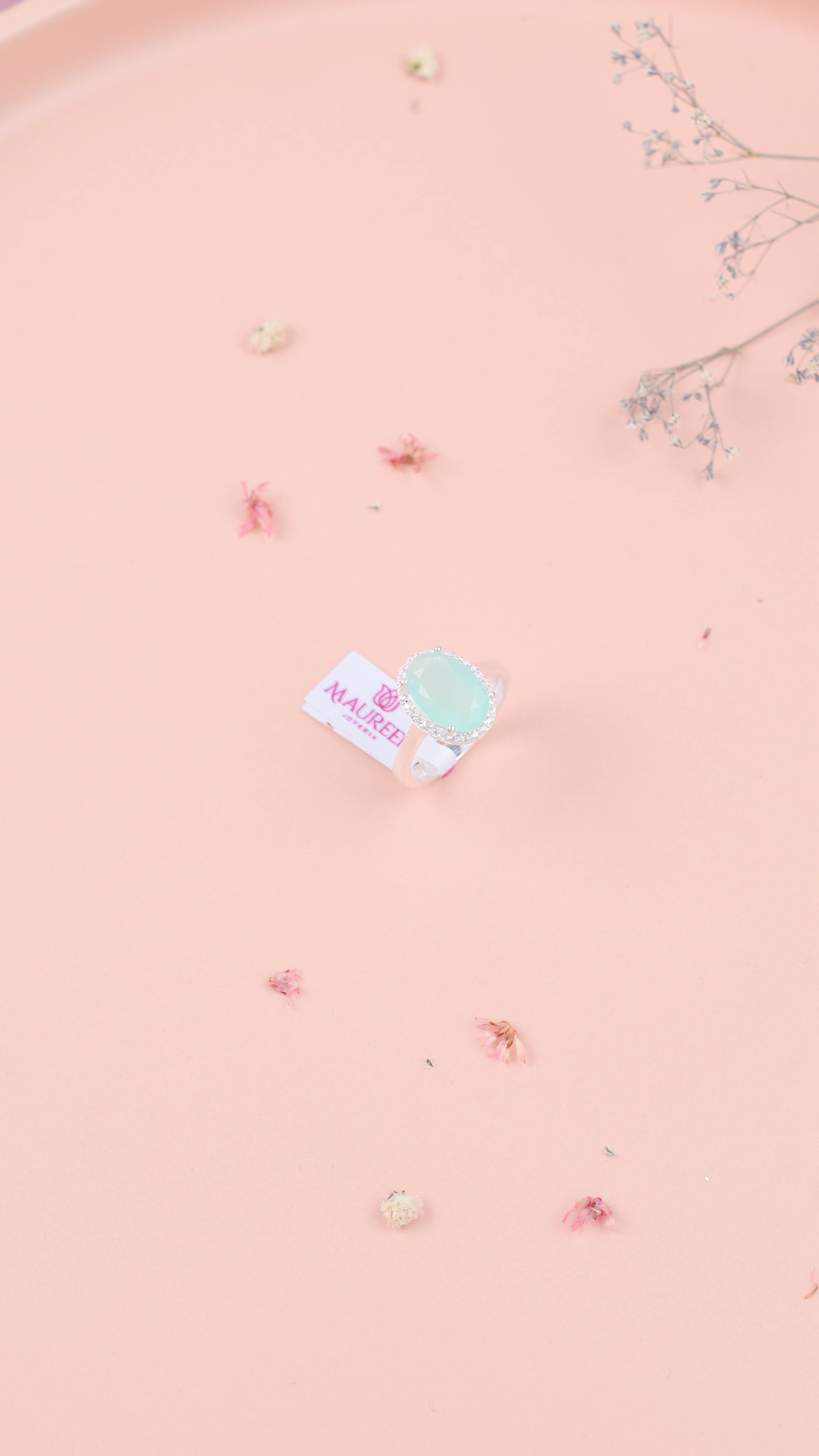 Anillo promesa piedra ovalada turmalina verde claro - Plata