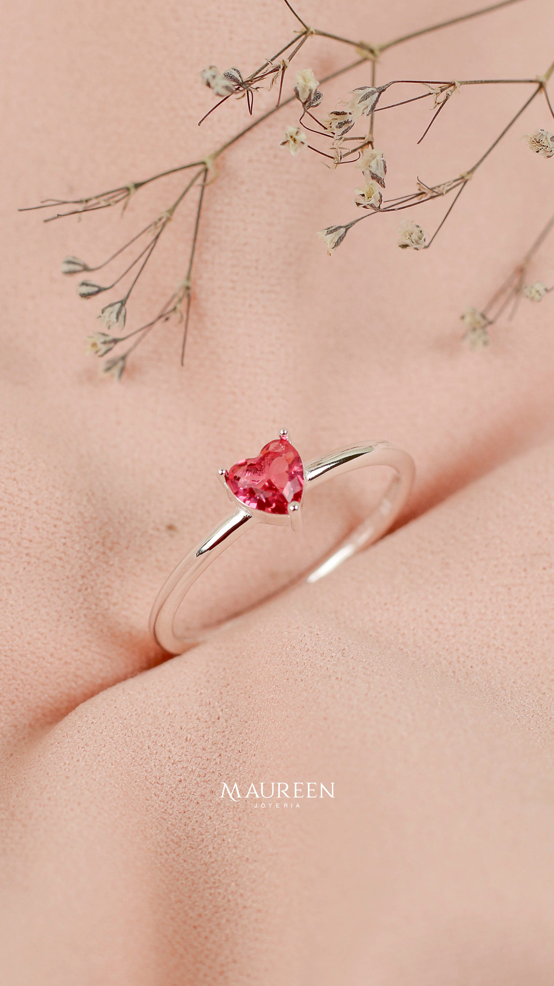 Anillo promesa rubi corazon 3 puntos - Plata