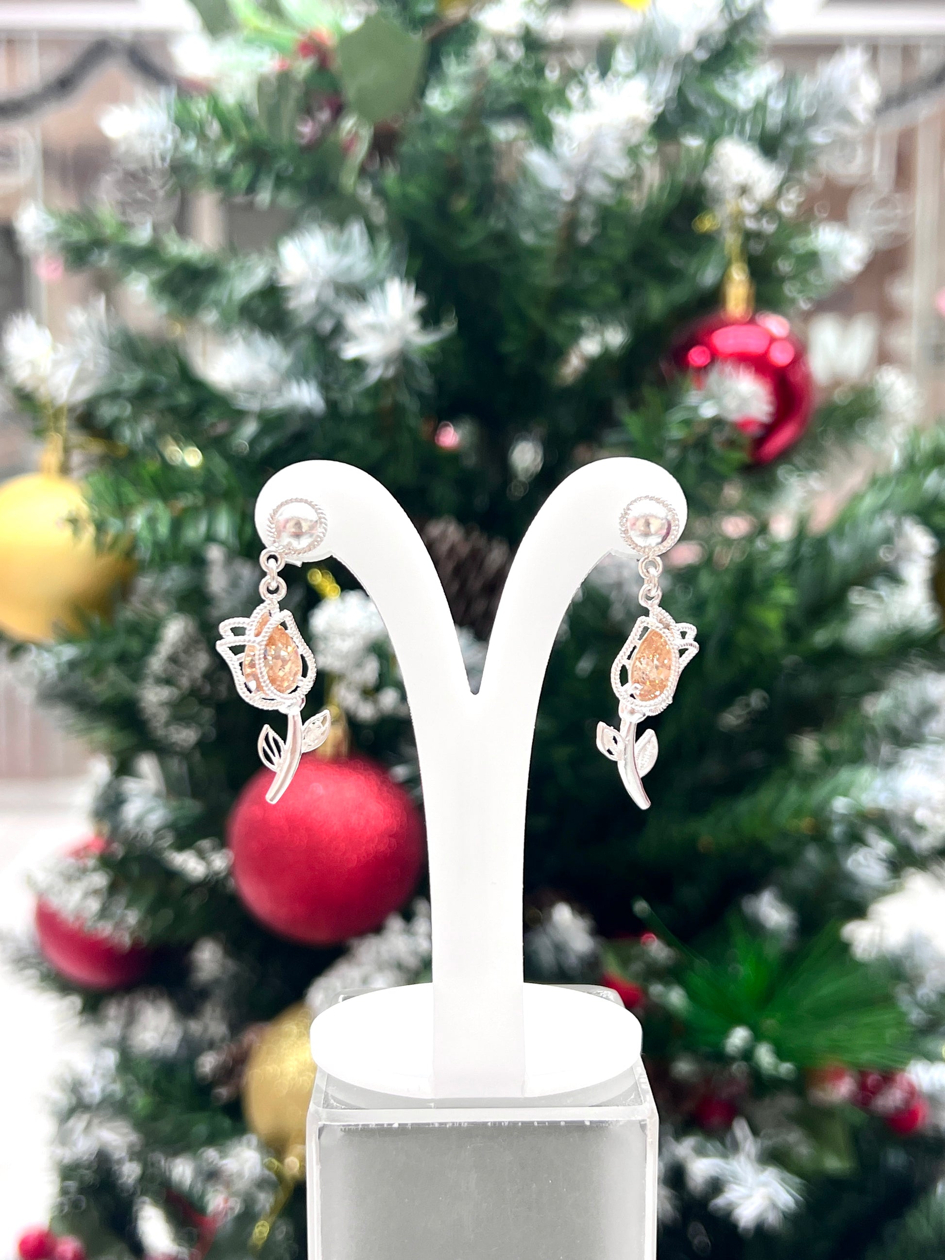 Arete filigrana tulipan circon naranja colgante poste - Plata