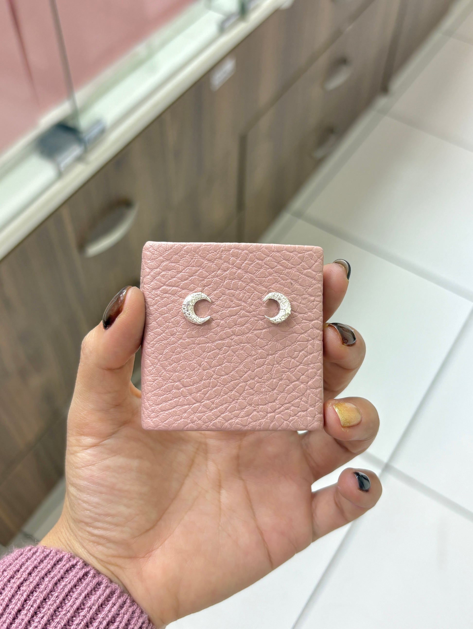 Arete luna diamantado con estrella pegado - plata