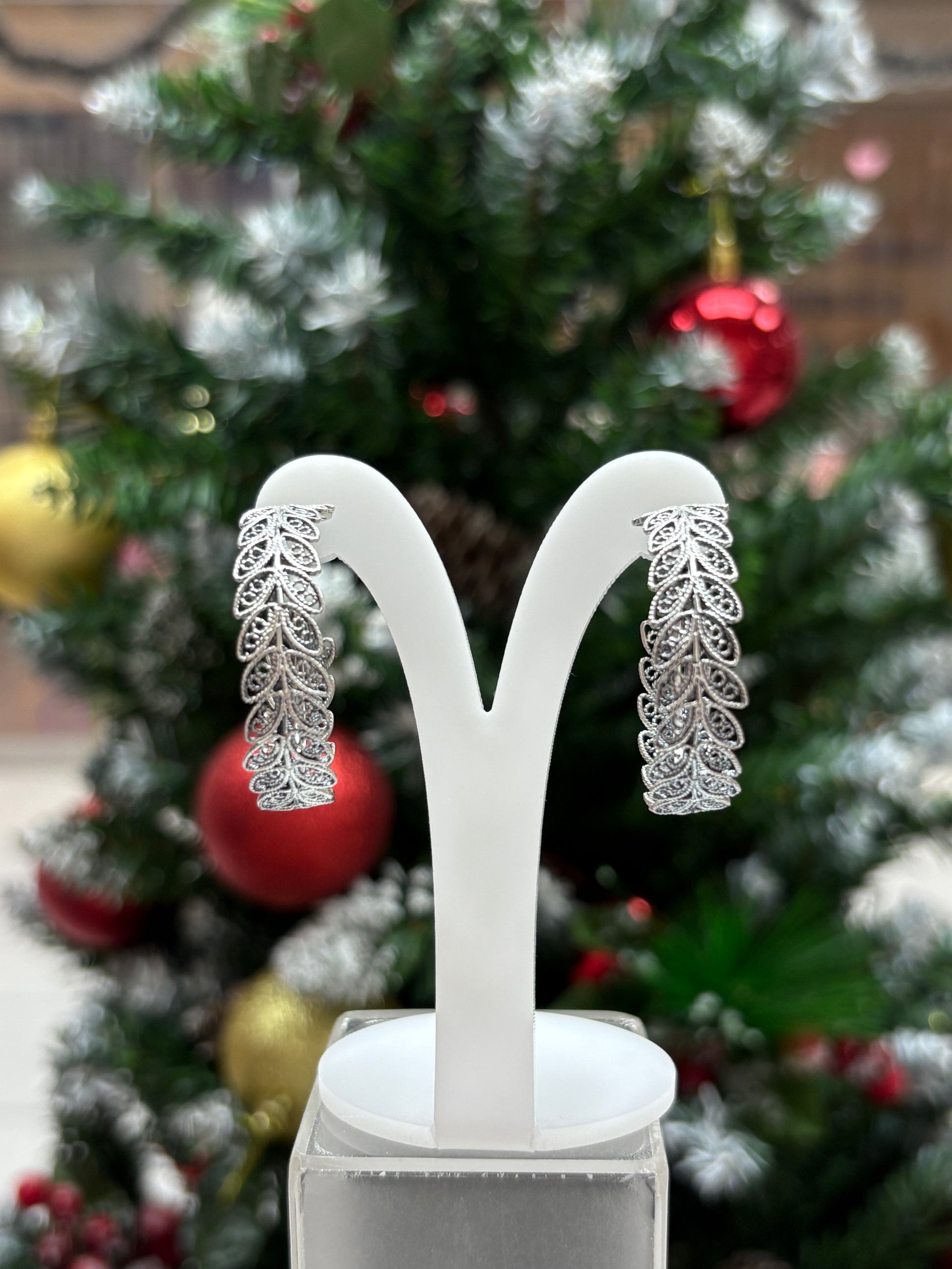 Argolla filigrana hojas poste - Plata quemada
