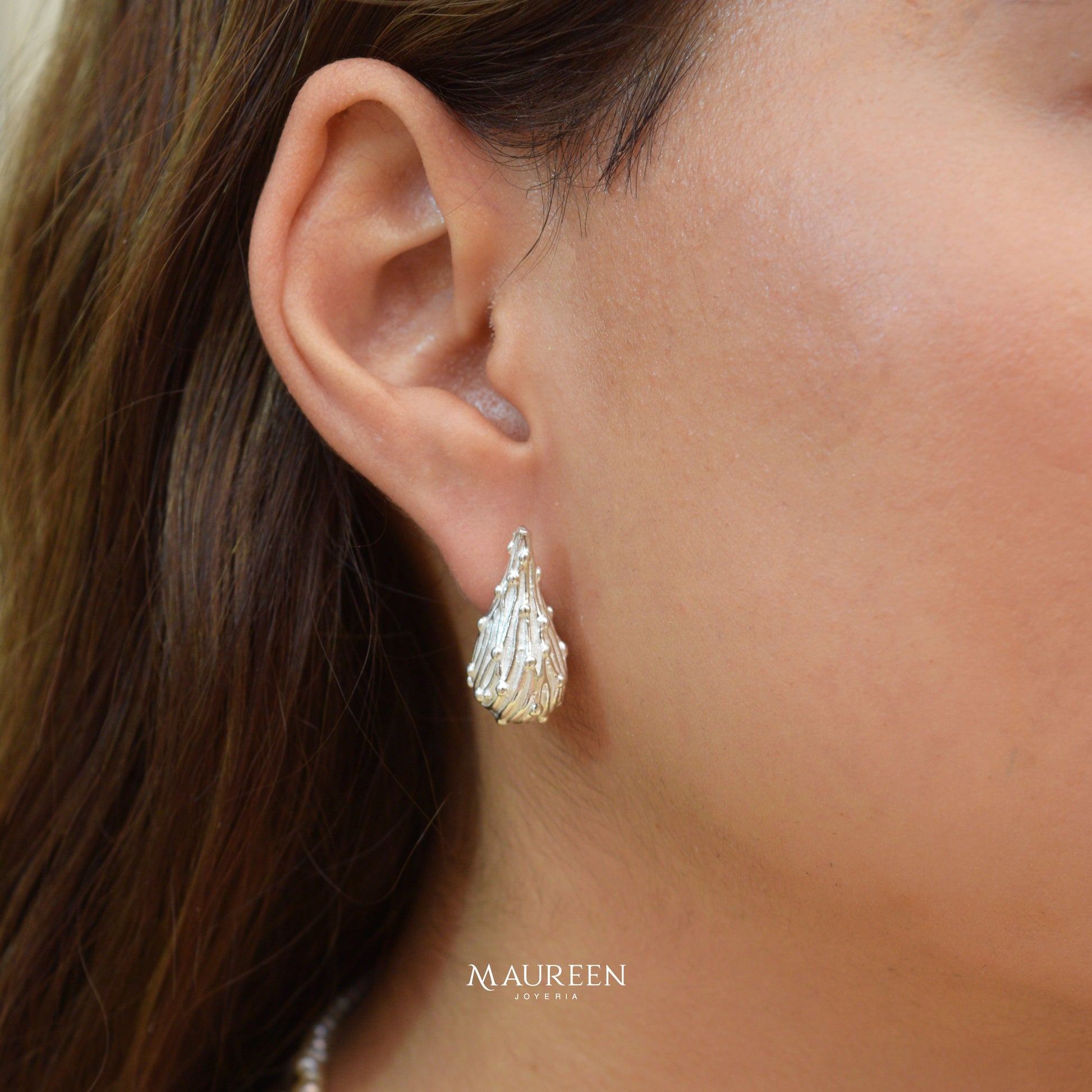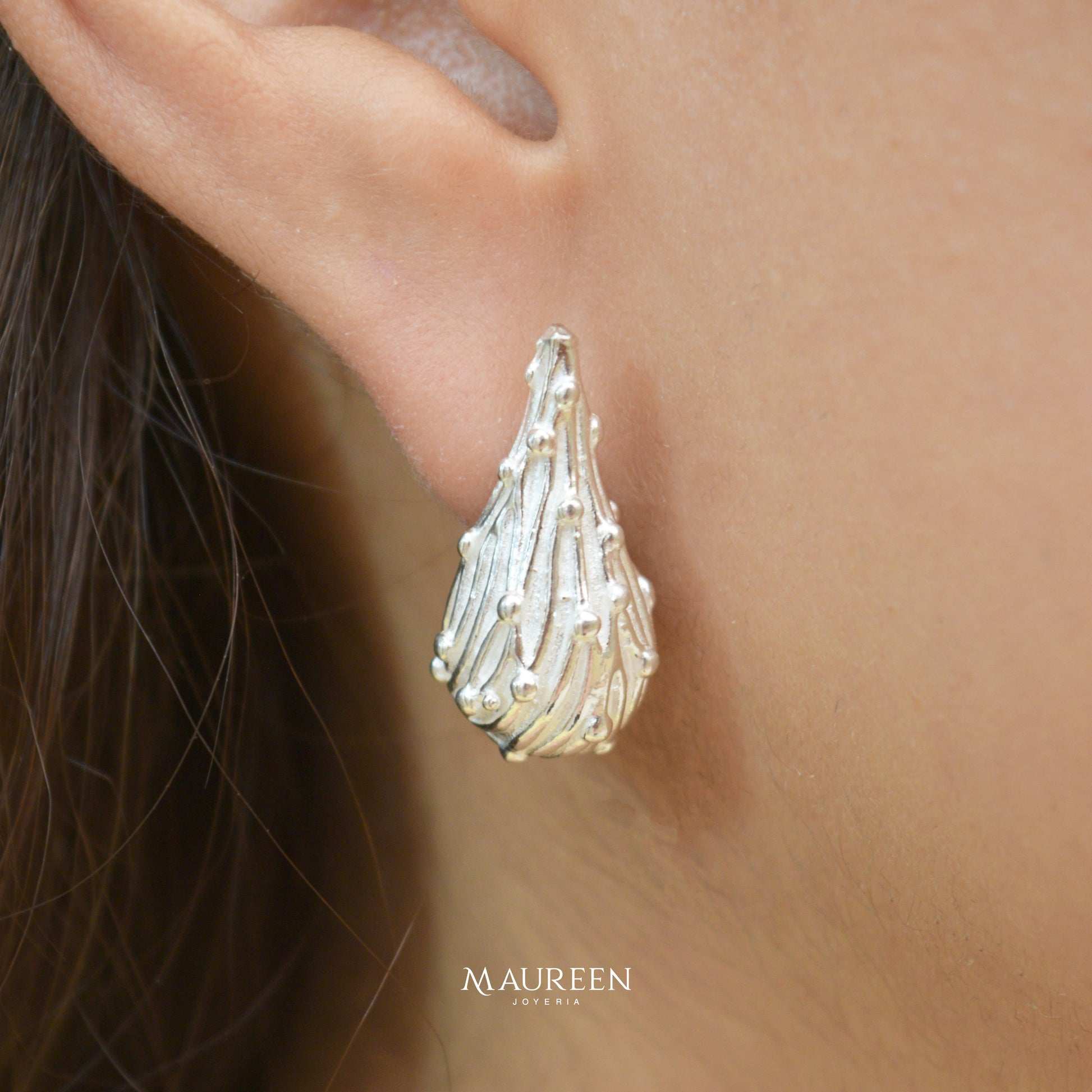 Argolla pera con poste - Plata