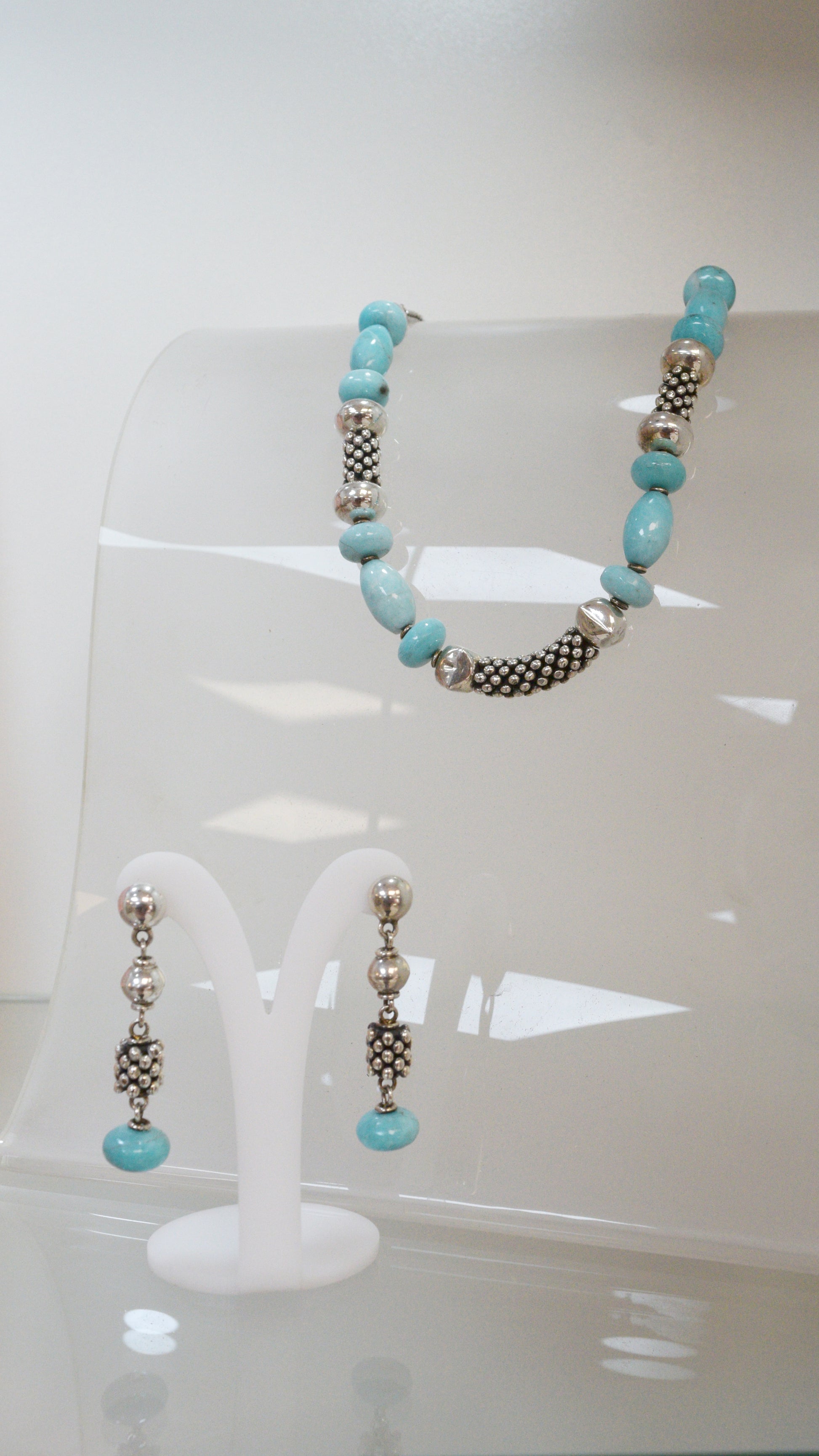 Juego piedra natural turquesa -Plata quemada