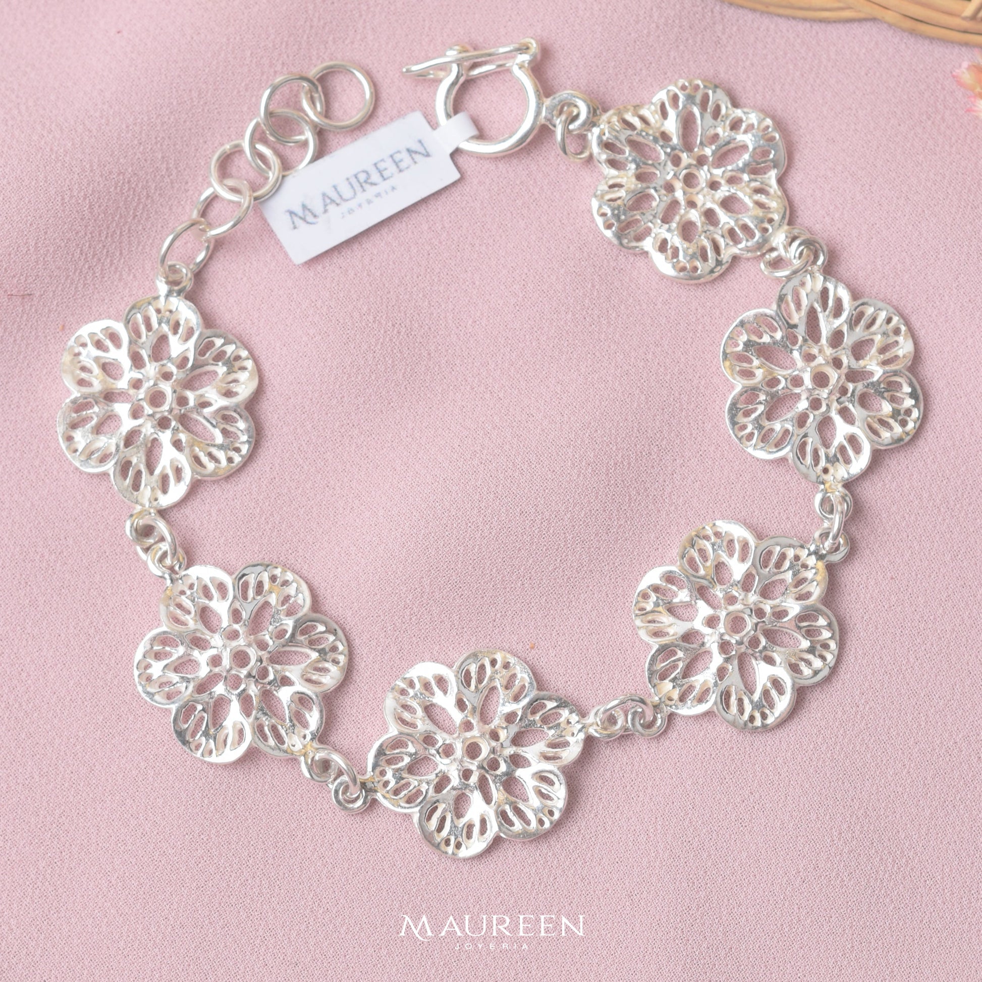 Pulsera de flores tejidas - Plata