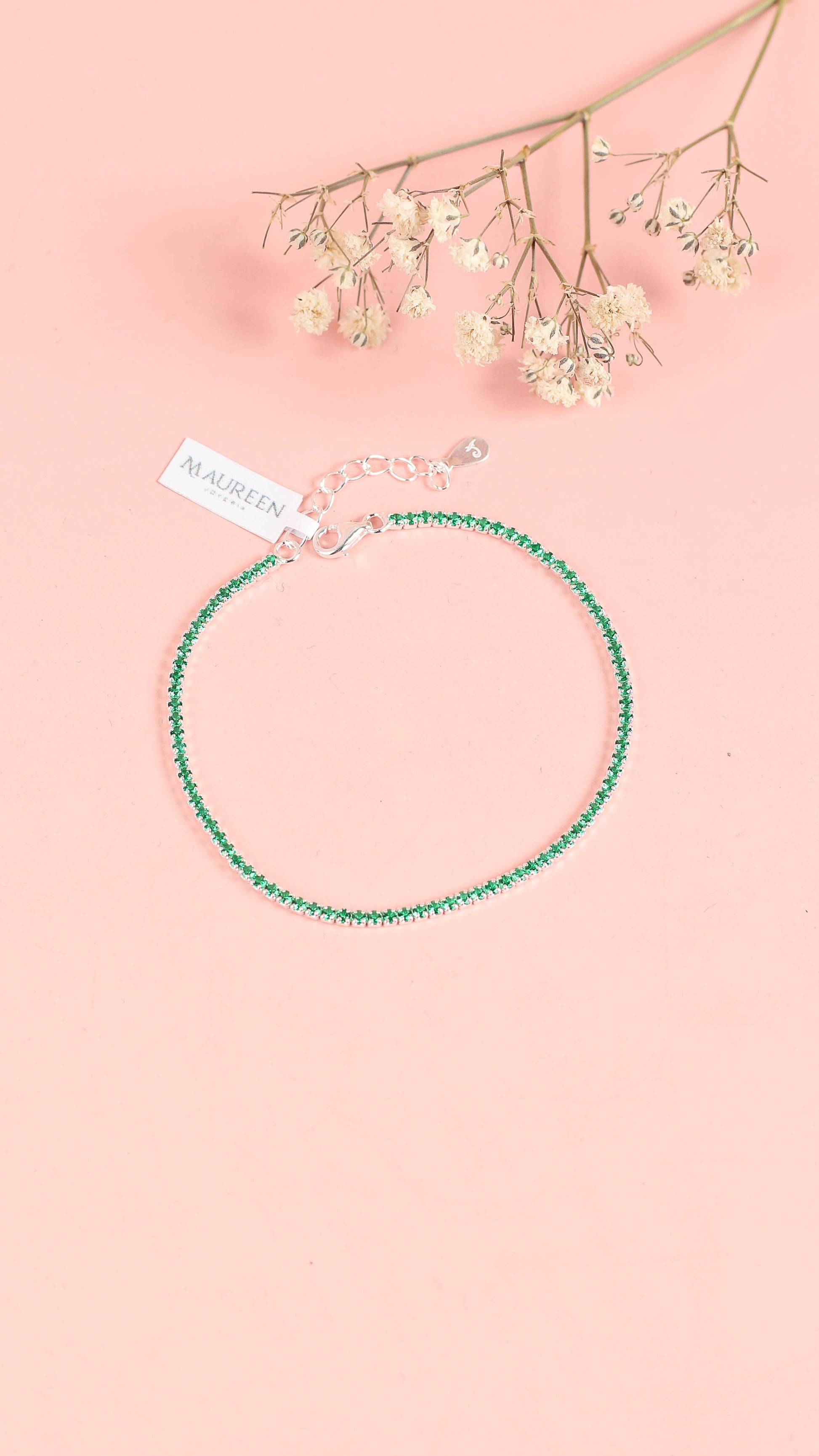 Pulsera tennis verde - Plata