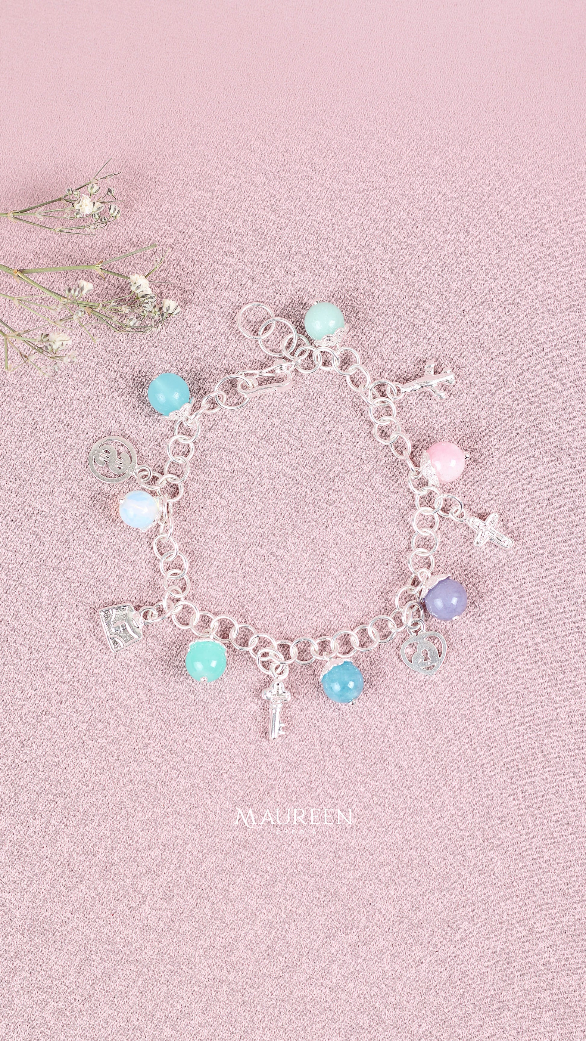 Pulsera viajera con piedras naturales - Plata